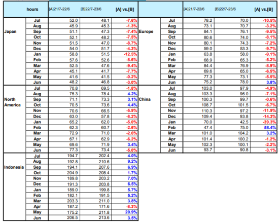 全球其他地区,6月份,欧洲和印尼地区小松挖掘机开工小时数同比正增长,198彩平台登陆线路其中欧洲地区小松挖掘机开工小时数同比增速在连续下滑12个月后再度回正,小幅增长3.8%,印尼地区同比增速有所收窄;日本、北美地区同比负增长,其中日本连续下滑一年整。