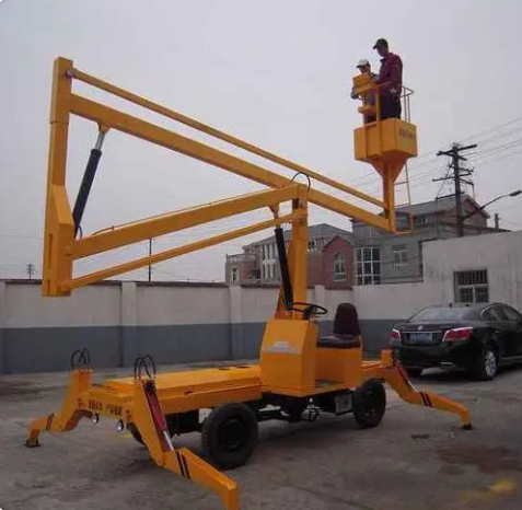 曲臂式高空作业升降车。有柴油机自行式、电瓶自行式、拖车式,具有伸缩臂,能悬伸作业,跨越一定的障碍或在一处升降可进行多点作业;360度旋转,平台载重量大,可供两人或多人同时作业并可搭载一定的设备;升降平台移动性好,转移场地方便;外型美观,适于室内外作业和存放。适用于车站、码头、商场、体育场馆、小区物业、厂矿车间等大范围作业。曲臂式高空作业平台叫高空作业平台车,主要用于比较高的作业环境,承载一个人到两个人之间,消防队普遍使用这种升降机。