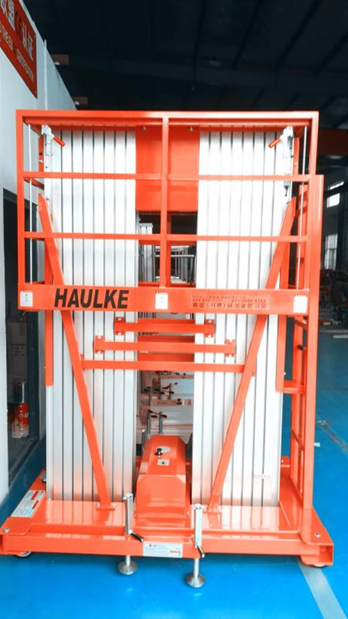 198彩登陆现因生产需要签约灏柯(上海)实业有限公司12米双桅杆铝合金式高空作业平台车,用于满足不同高度的生产需要。